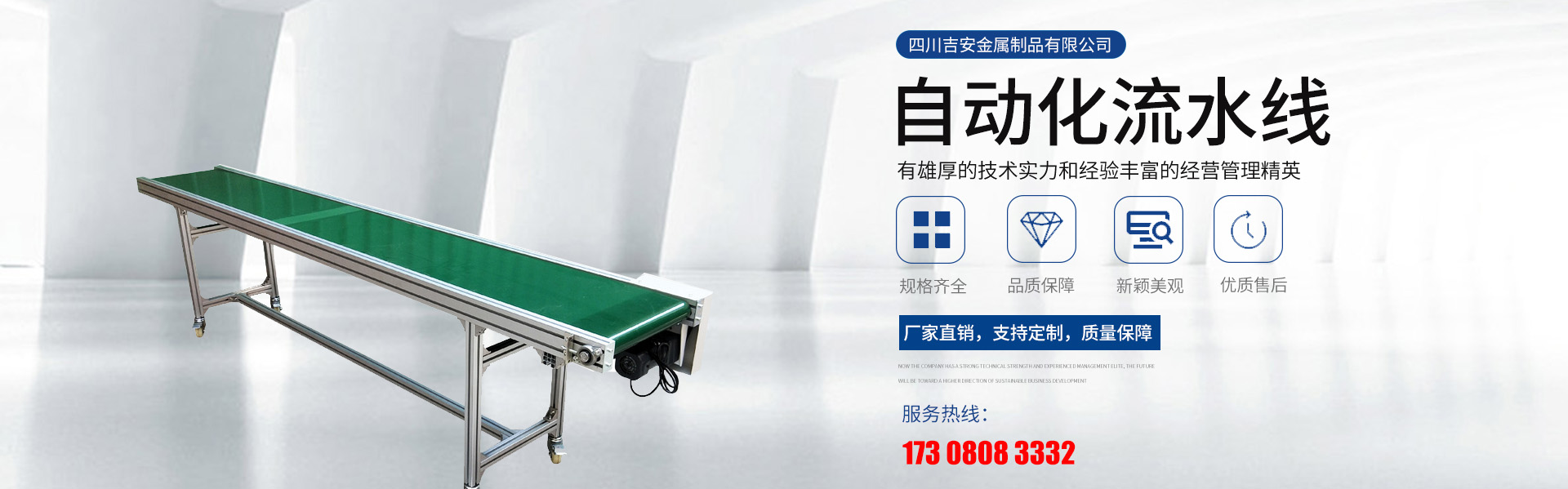 四川吉安金屬制品有限公司是集工業(yè)鋁型材及配件、貨架、工作臺、皮帶輸送線、自動化流水線、線棒精益管及扣件、鈑金和鋁合金流利條、鋁線棒及扣件、倉儲設(shè)備、物流器具、周轉(zhuǎn)臺車、工位器具、非標器具設(shè)...